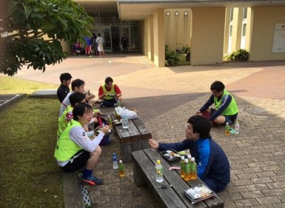 皆さん差し入れの弁当をおいしく食べています。