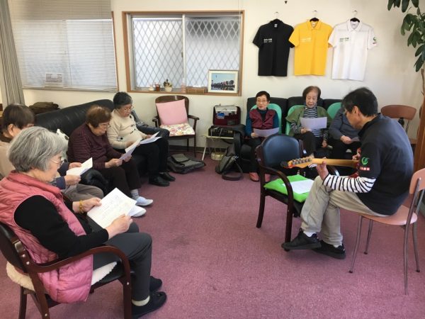 今日の若久はギターの弾き語りをしてみなさん音程に合わせて歌いました。