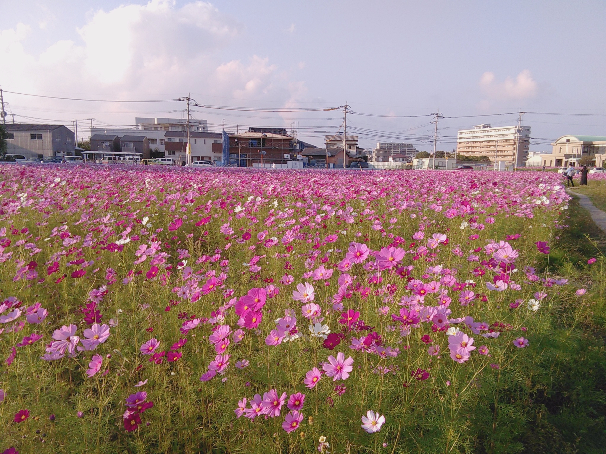 今日は、きれいな秋晴れ♪コスモス見学へレッツゴー!!!まさに見頃。見事です!
