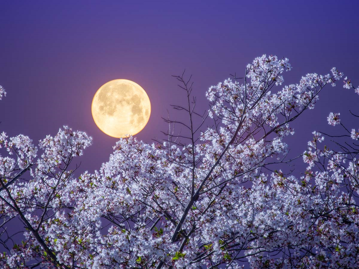 4月の満月は寒い冬を超えて花が咲く様子から