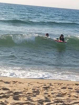 子供は初めてボディーボードに挑戦!