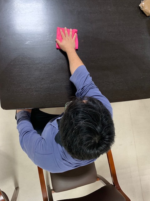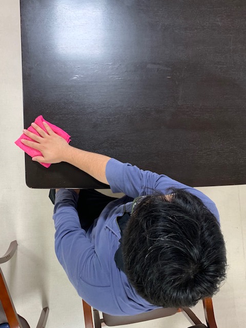 ※テーブルを綺麗にするつもりで出来るだけ大きく腕を動かすことがポイントです!