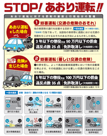 あおり運転や危険運転の罰則が強化された 道路交通法が7月より改正されましたね!