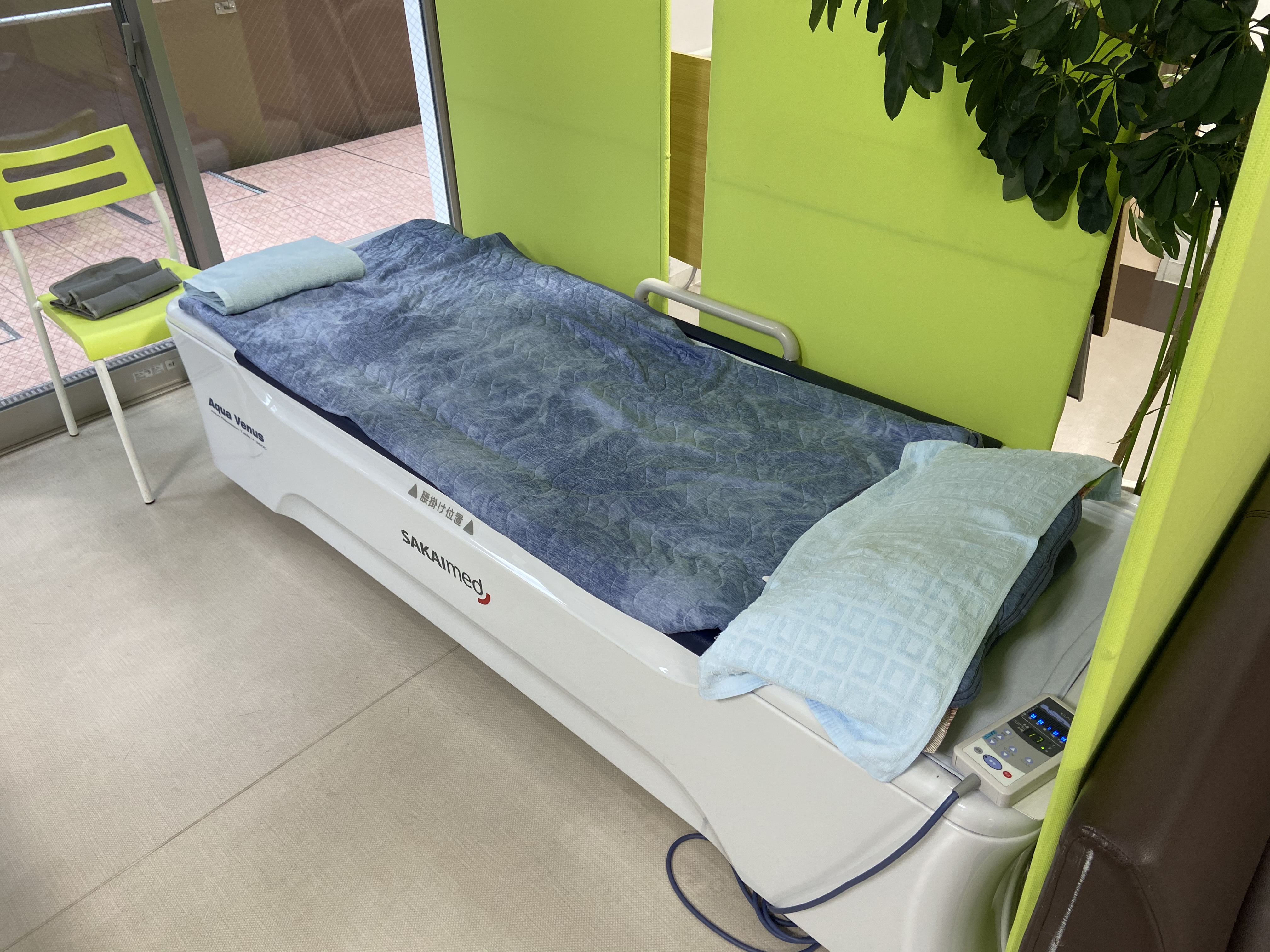 こちらの器具は上部に水が入っており、そこに寝ることで背中側の全身を水圧でマッサージしてくれるものです。