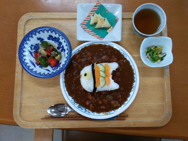 よーく見てください。兜の春巻きです(≧▽≦)。もちろんシェフの作品。